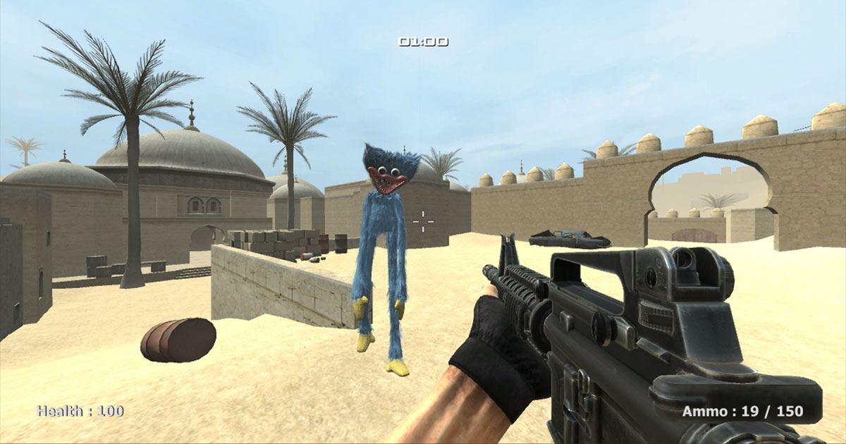 Poppy Strike is a three-dimensional shooting game that includes a gun game mode equipped with a vast array of firearms and the renowned Dust 2 map filled with huggy wuggy. Your objective is to eliminate all approaching huggy wuggy and strive to endure until the conclusion of each round to acquire new weapons.