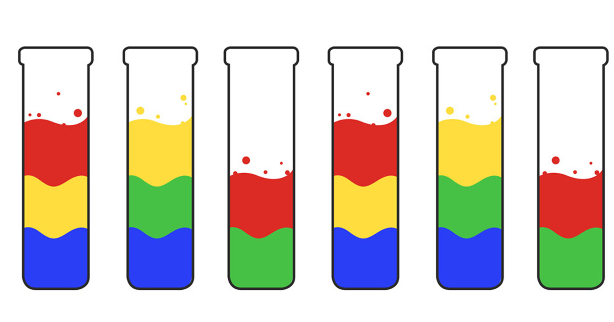 HOW TO PLAY: Tap any glass to pour water to another glass. The rule is that you can only pour the water if it is linked to the same color and there’re enough space on the glass. Try not to get stuck - but don’t worry, you can always restart the level at any time.
